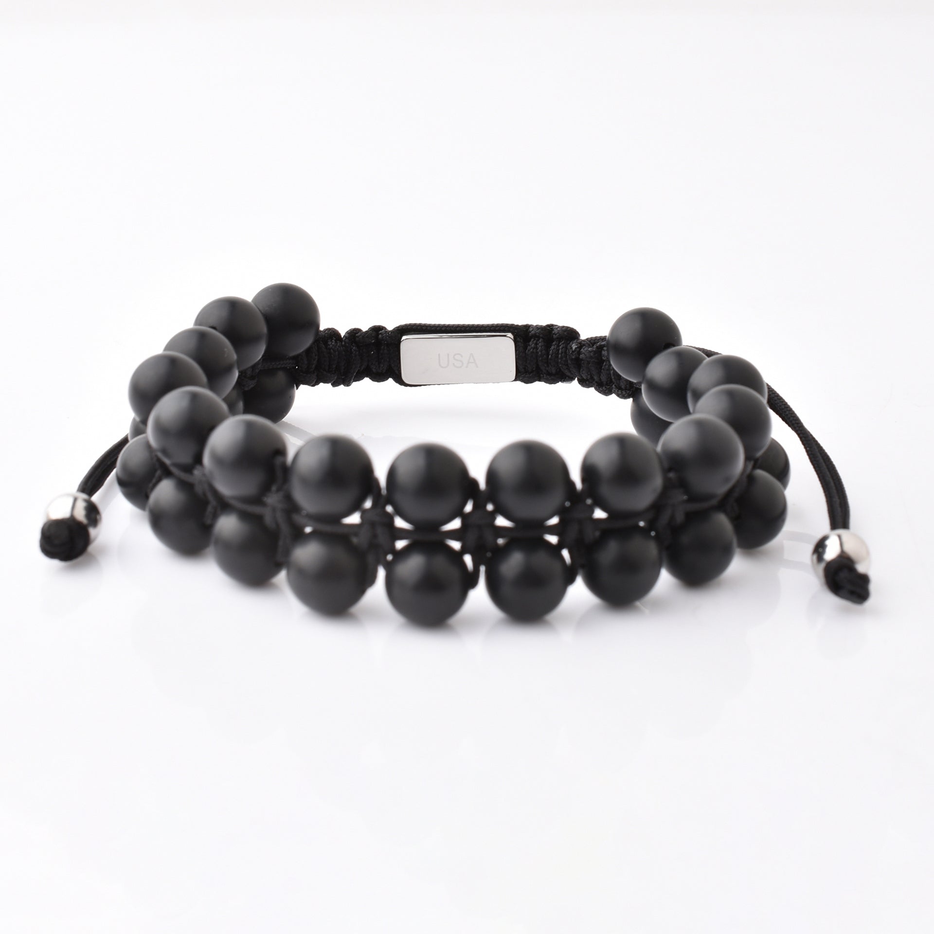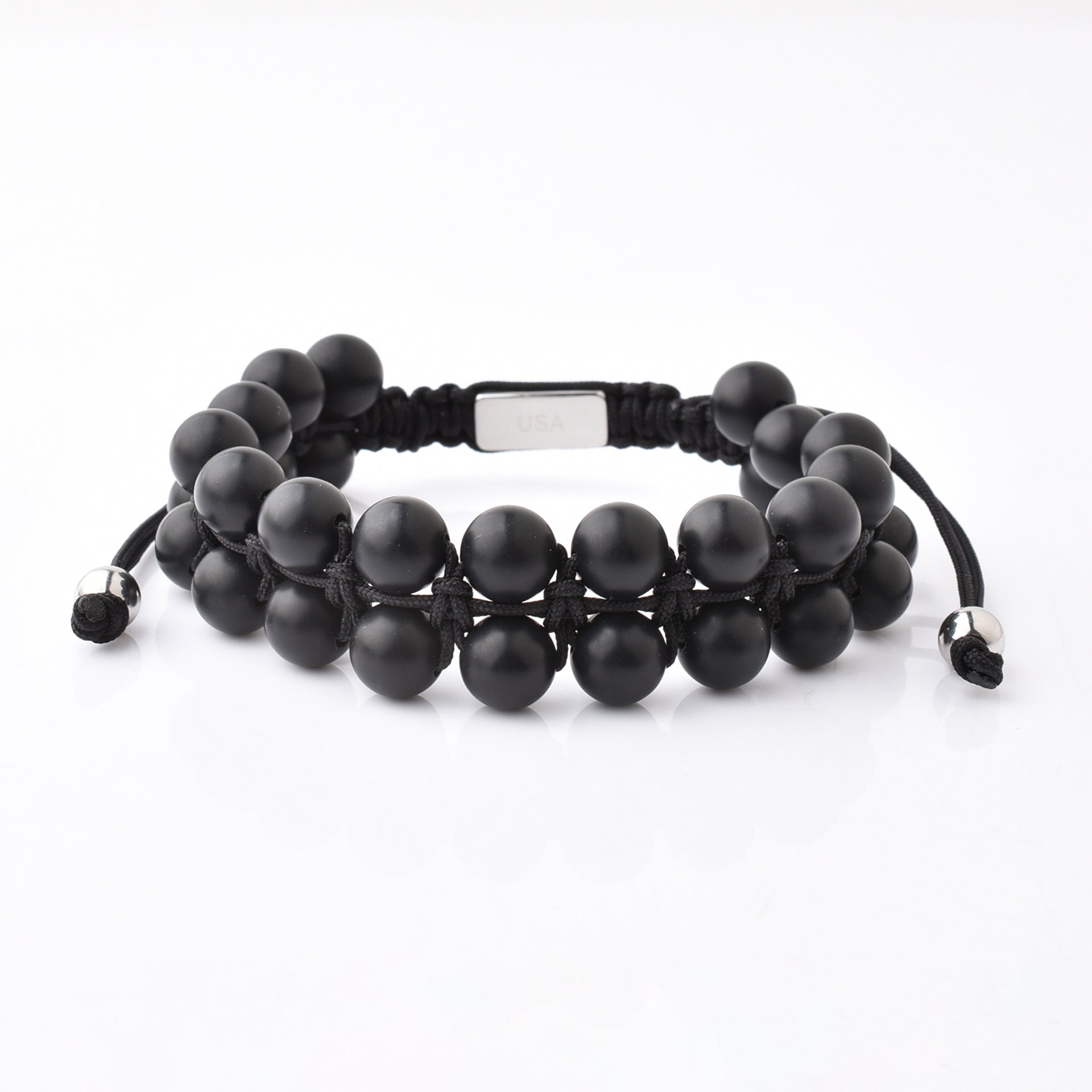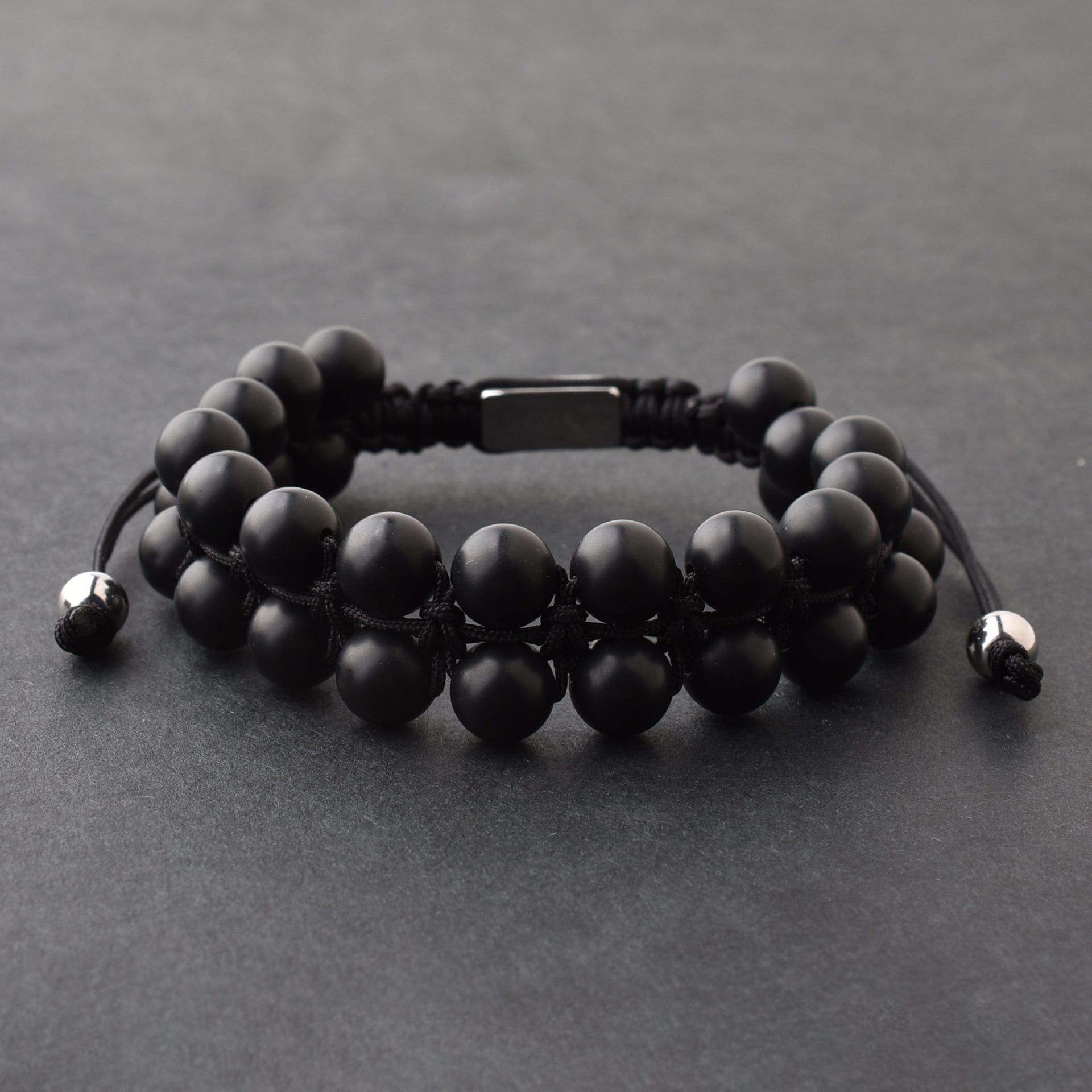 Black Gemstone Beads Bracelet, Adjustable Knot - 8mm