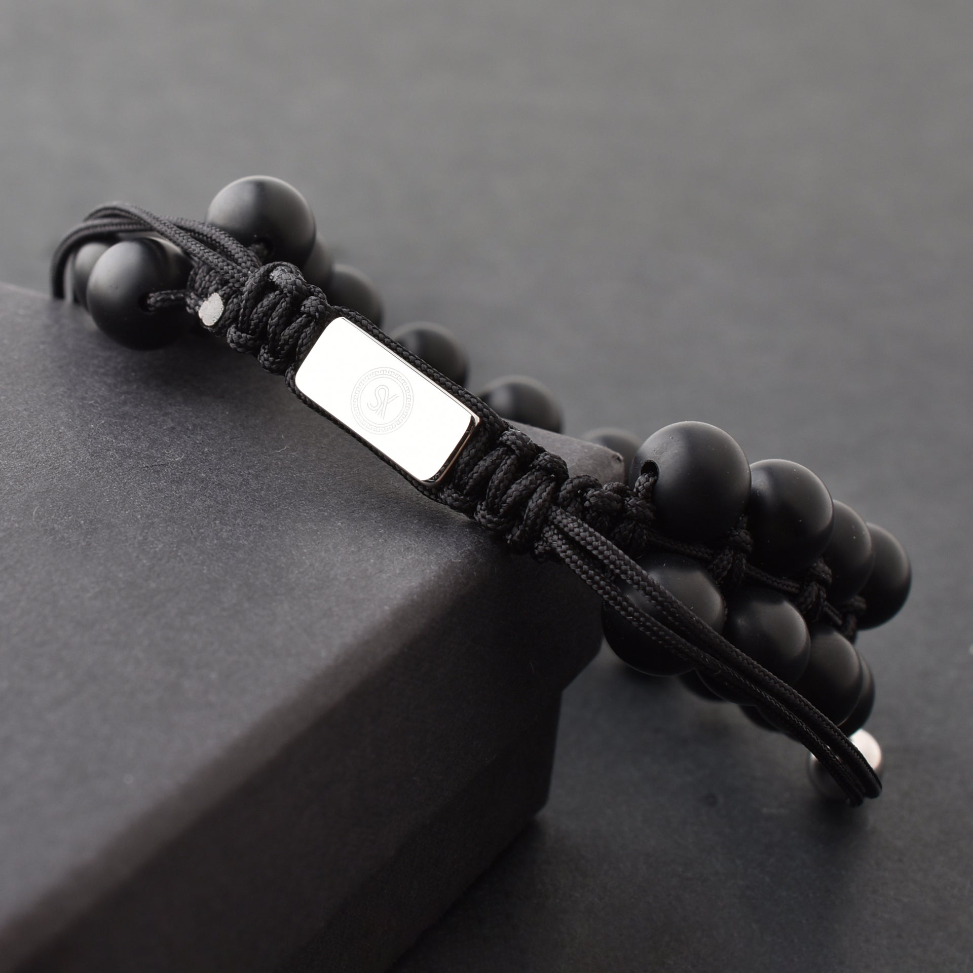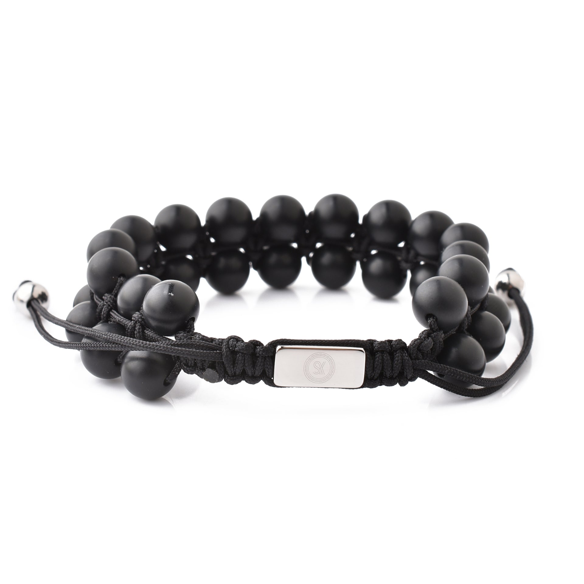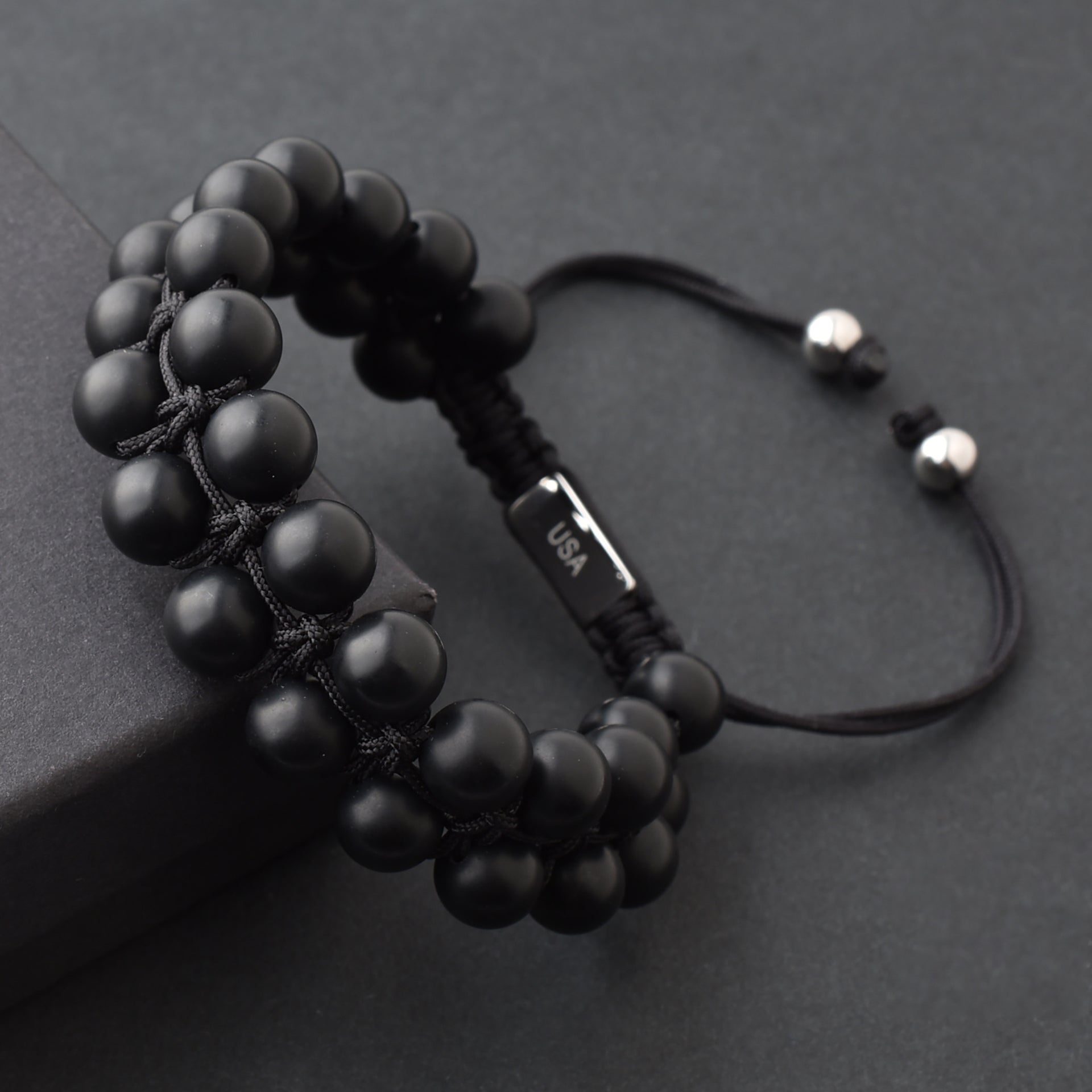 Black Gemstone Beads Bracelet, Adjustable Knot - 8mm