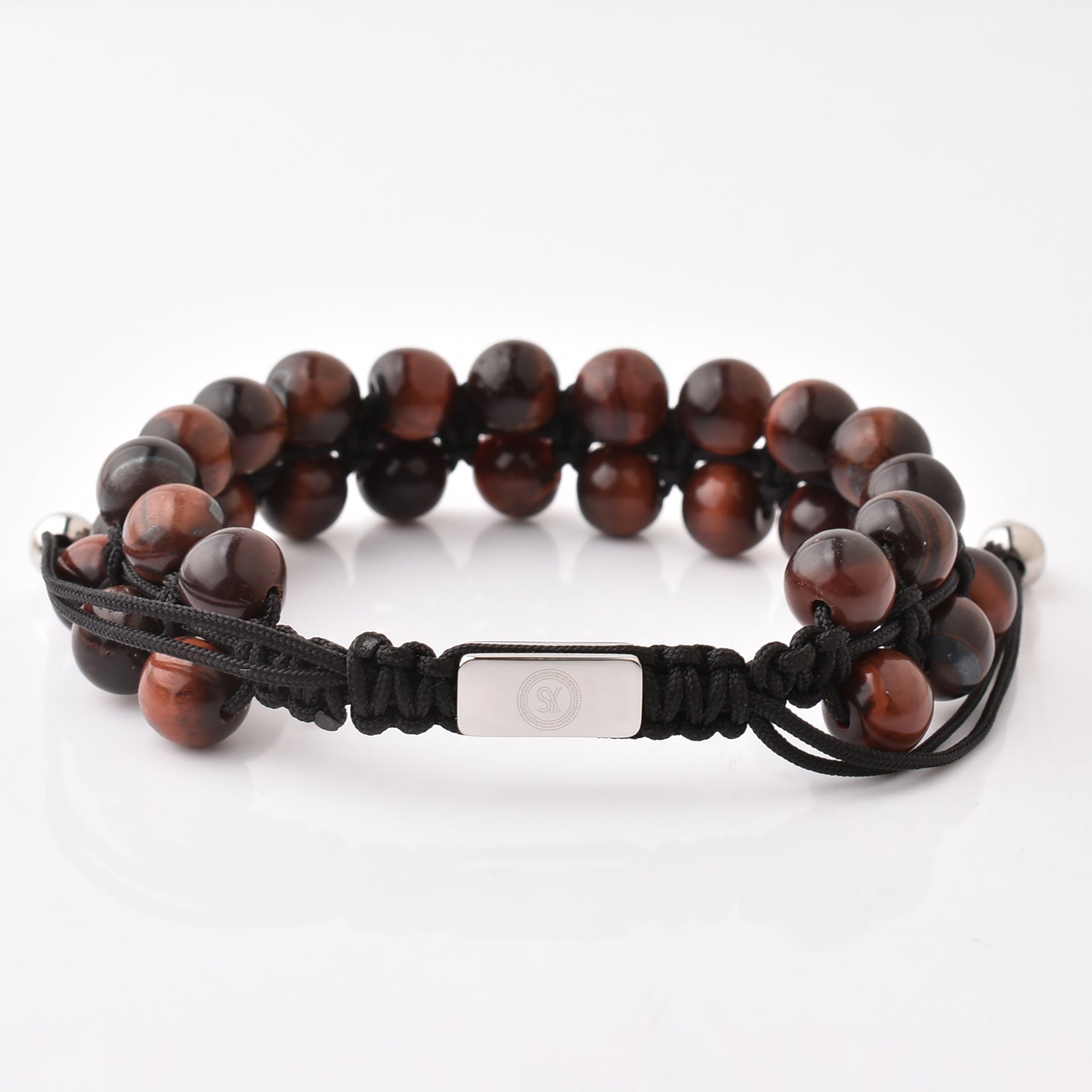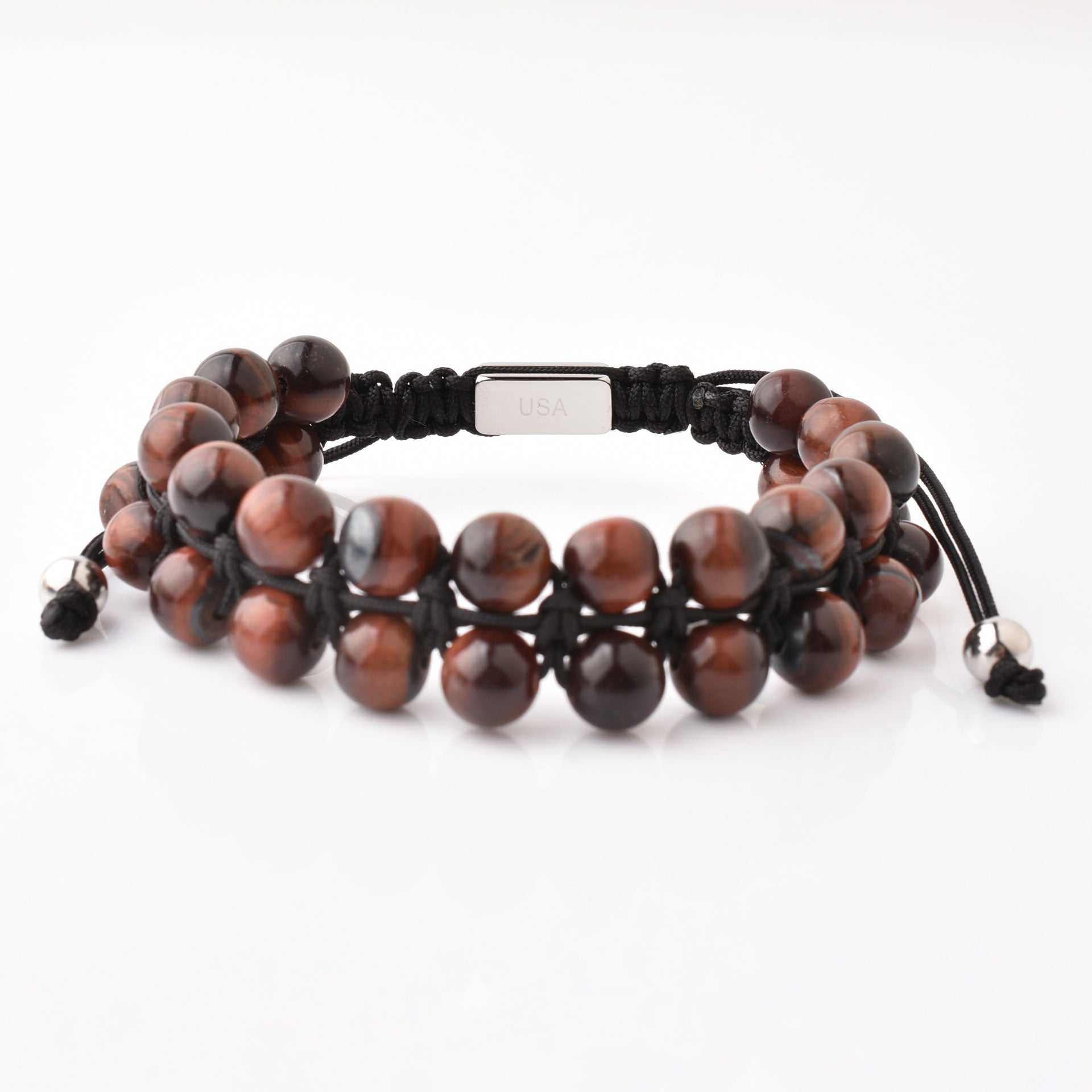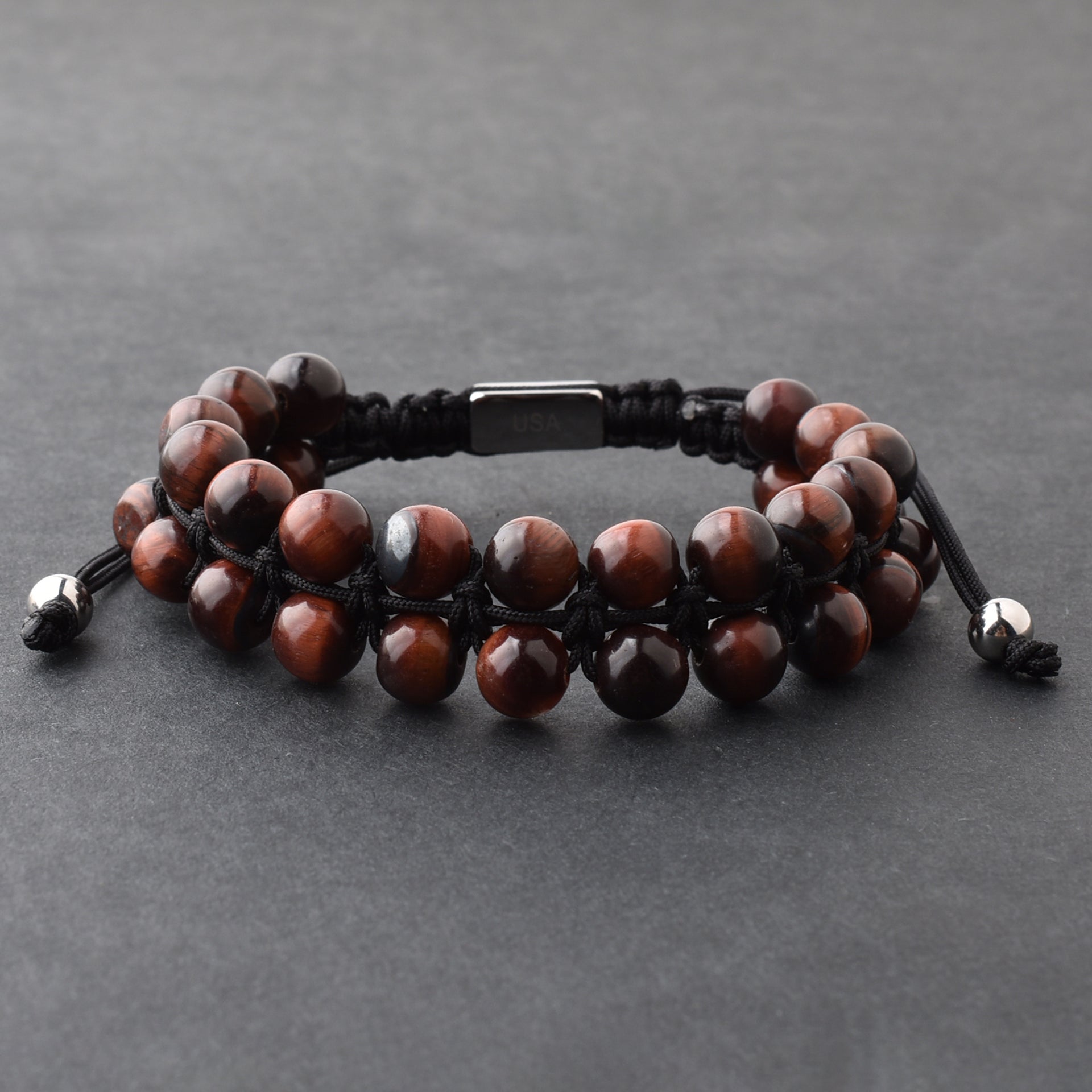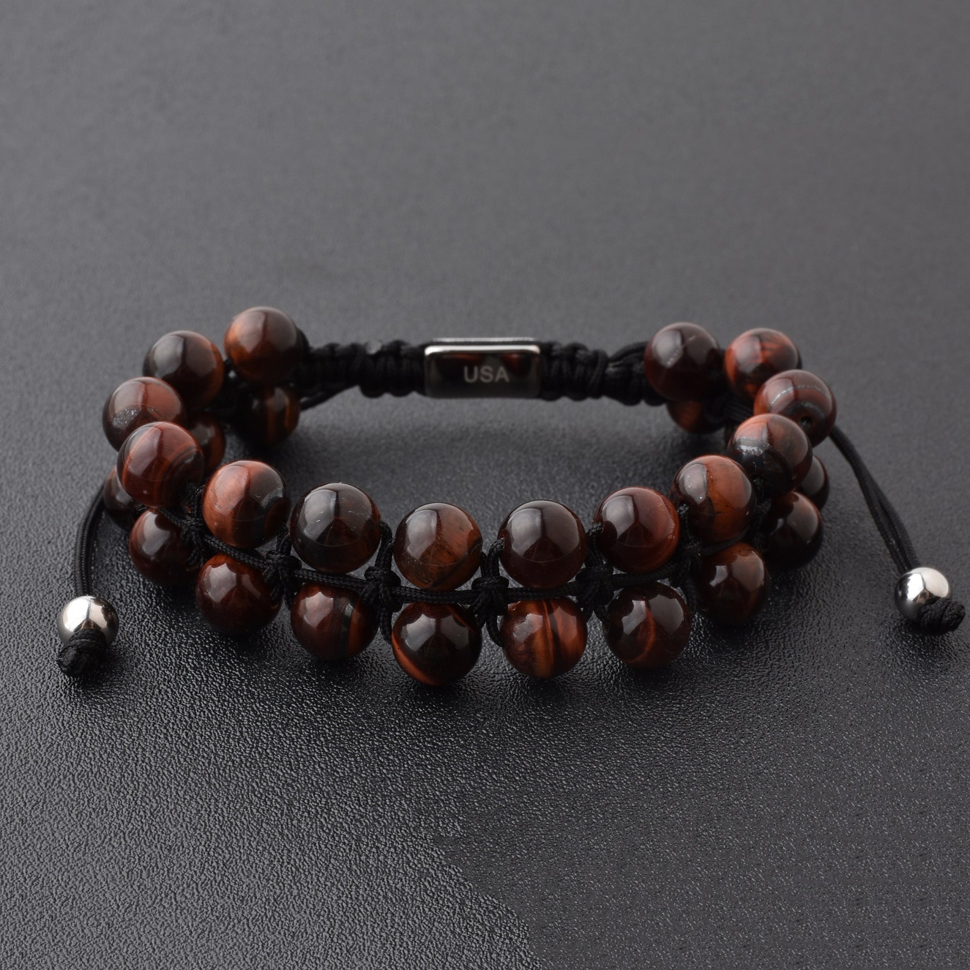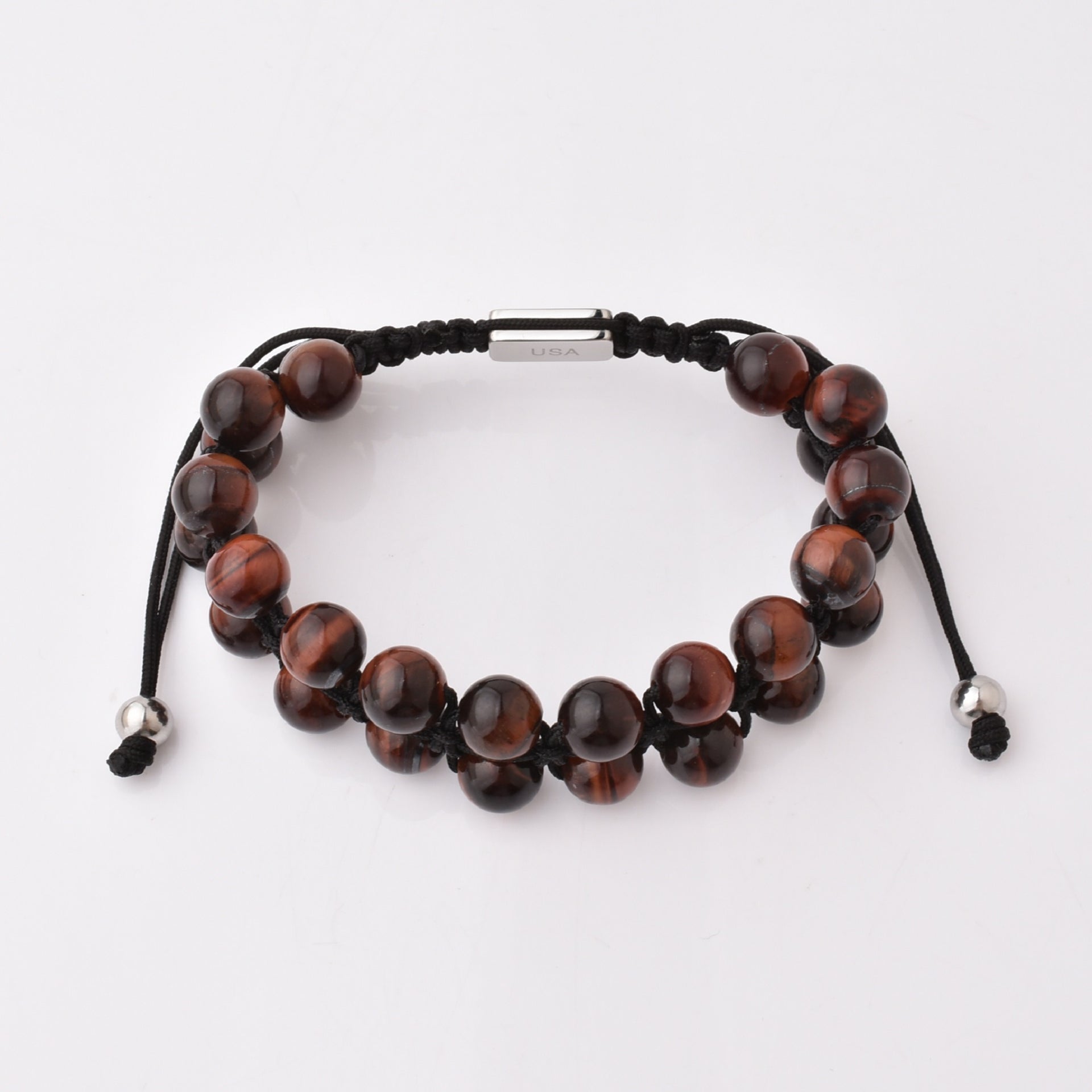 Brown Gemstone Beads Bracelet, Adjustable Knot - 8mm