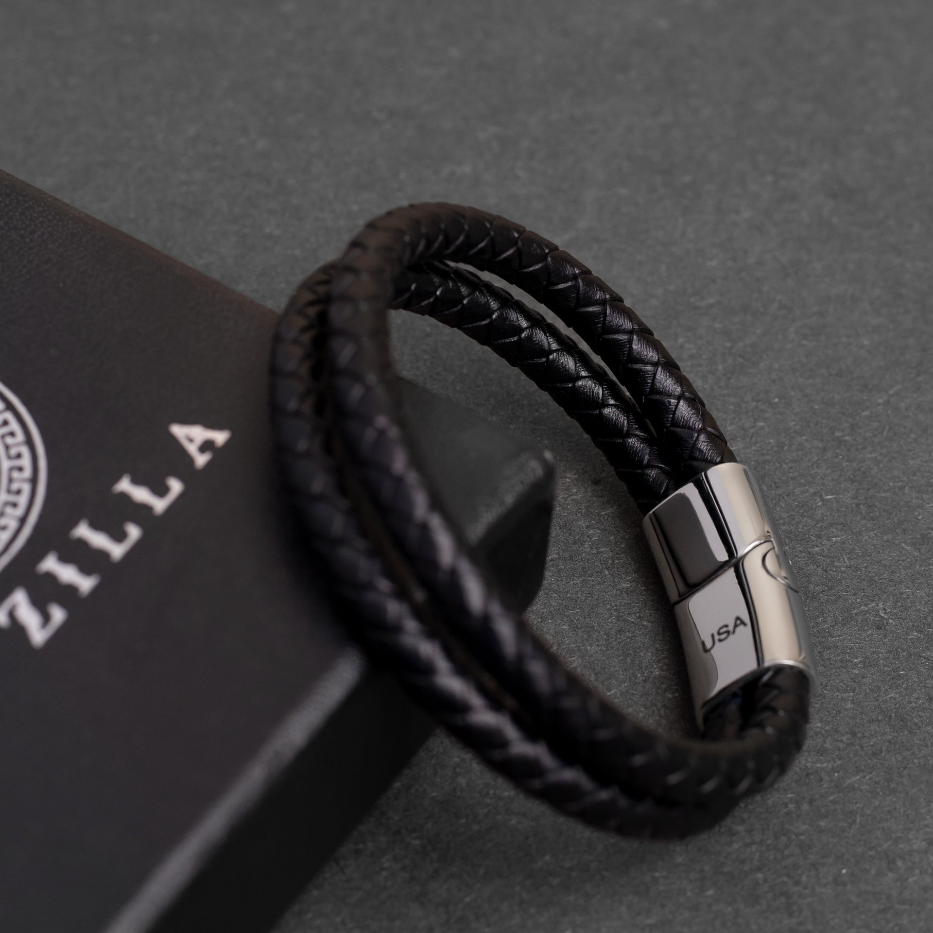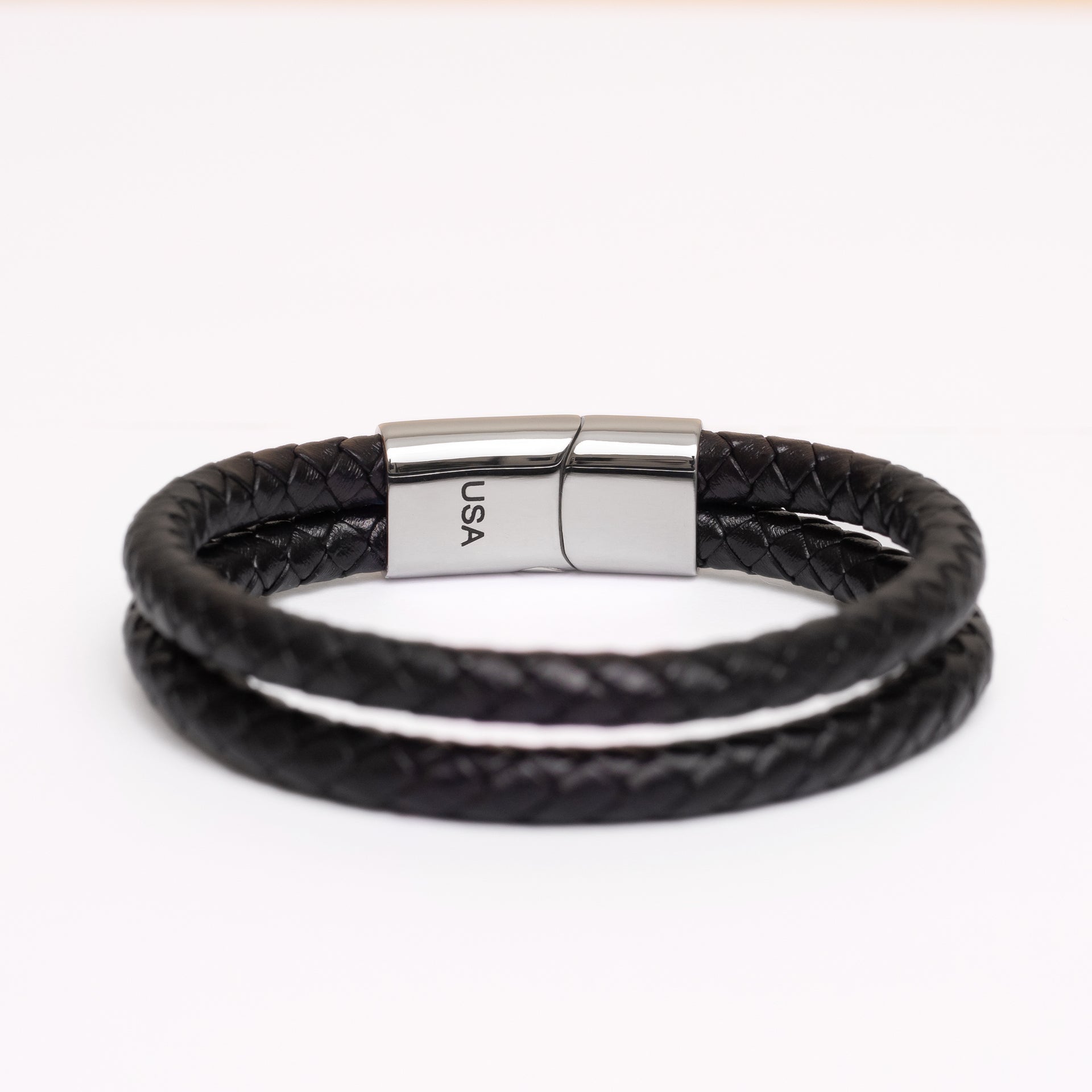 • This bracelet is made from durable leather and finished with a strong slide magnetic stainless steel clasp.