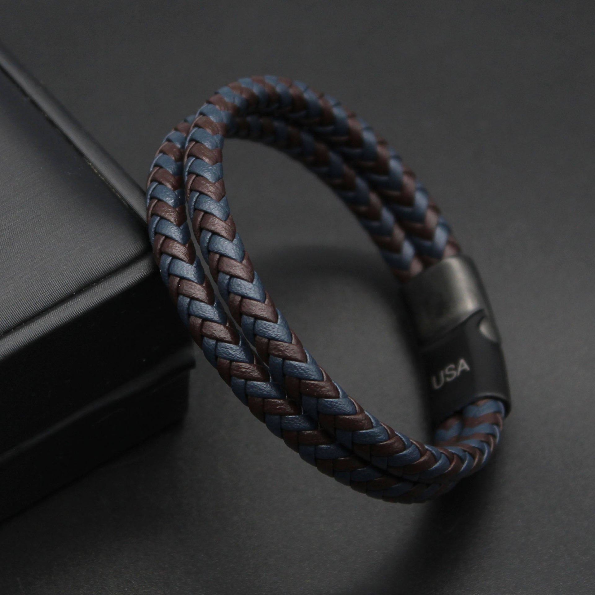 • This bracelet is made from durable leather and finished with a strong buckle stainless steel clasp.
