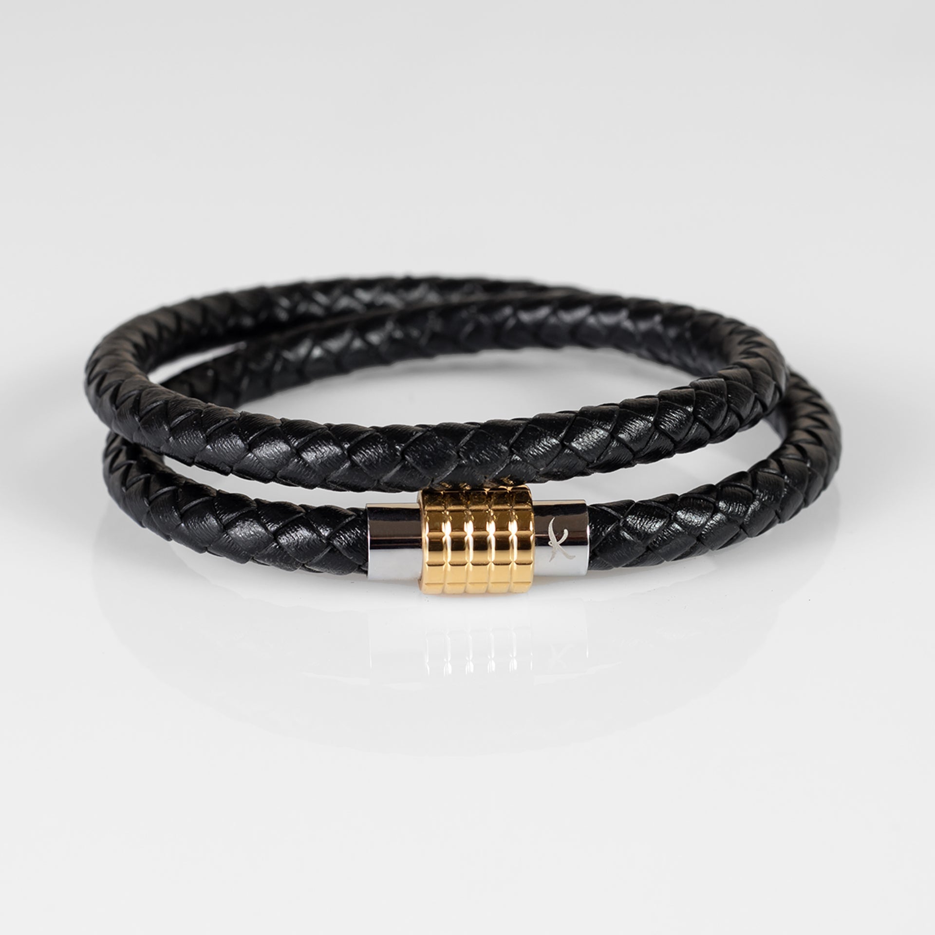 Luxury Men’s Bracelet – Double Strand Black - Golden Clasp