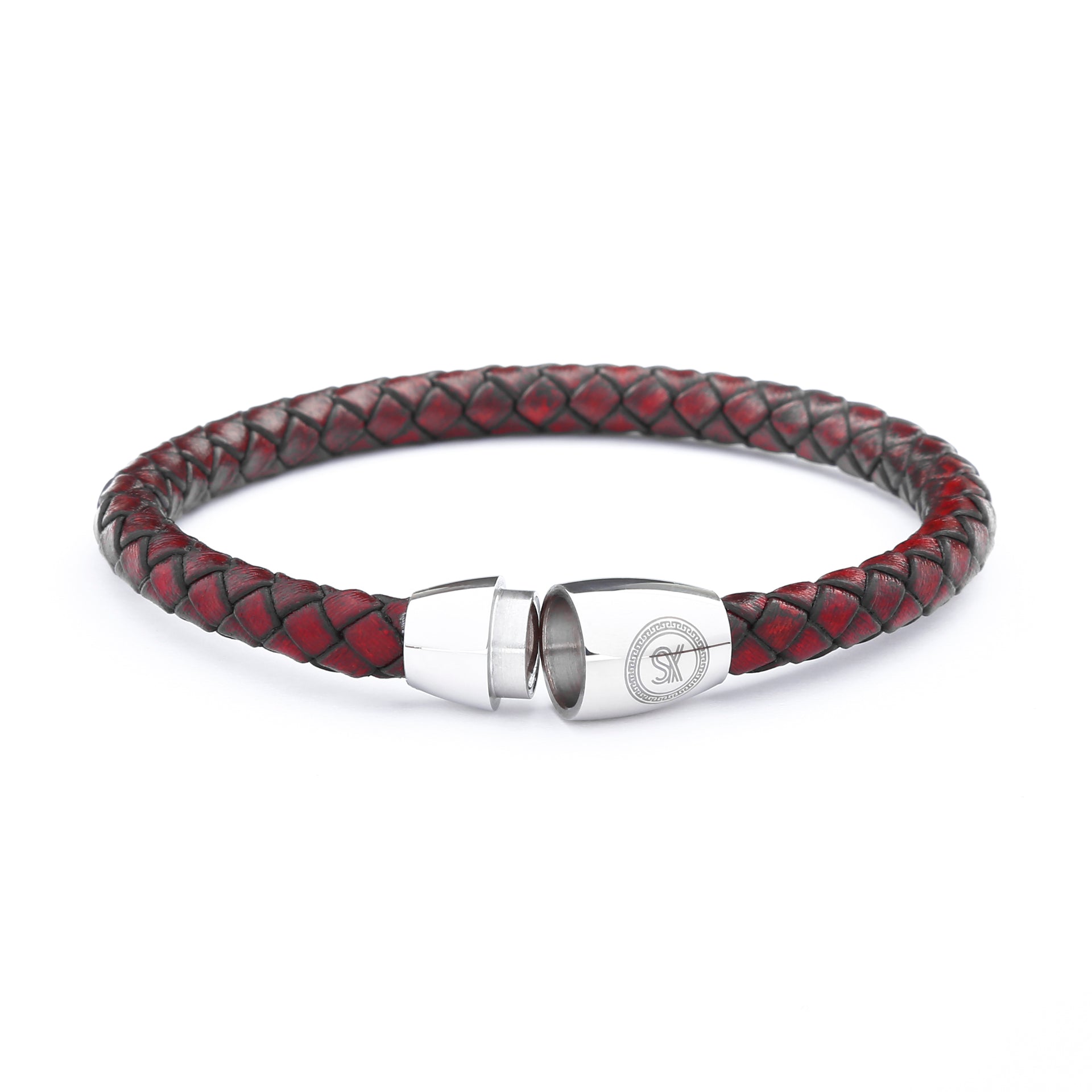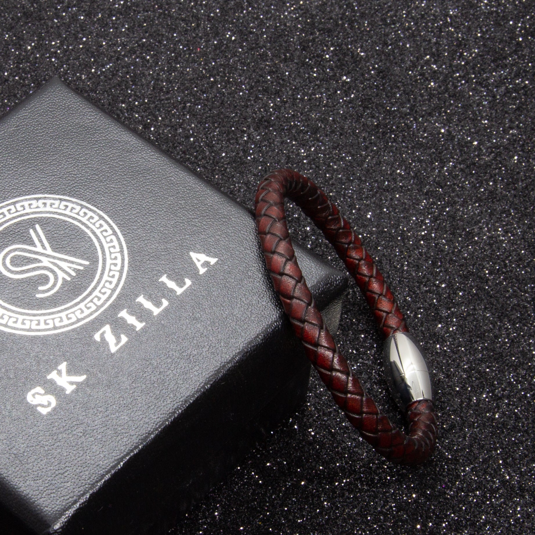 Luxury Men's Bracelet- Single Maroon - Silver Oval