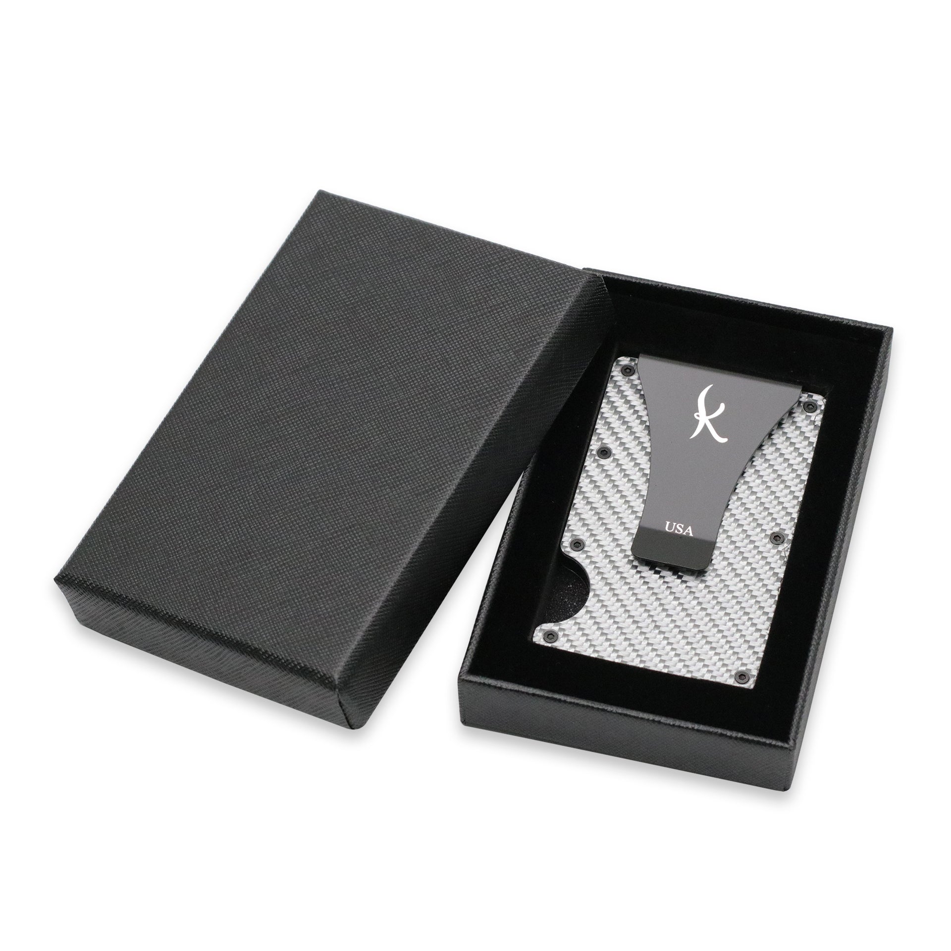 Silver: RFID Blocking Carbon Fiber Wallet for Men & Women - Reinforced Money Clip - Gift Box